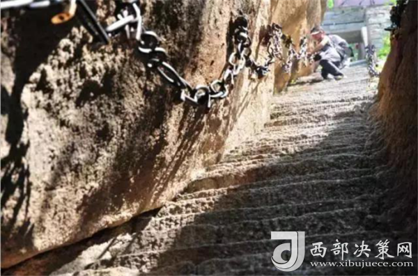 長空棧道位于華山南峰東側(cè)山腰,是華山派第一代宗師元代高道賀志真為遠(yuǎn)離塵世靜修成仙,在萬仞絕壁上鑲嵌石釘搭木椽而筑。長空棧道的盡頭便是思過崖。