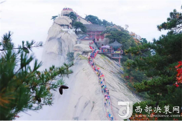 南峰海拔2154.9米,是華山最高主峰,也是五岳最高峰,古人尊稱它是“華山元首”。登上南峰絕頂,頓感天近咫尺,星斗可摘。舉目環(huán)視,但見群山起伏,蒼蒼莽莽,黃河渭水如絲如縷,漠漠平原如帛如綿,盡收眼底,使人真正領(lǐng)略華山高峻雄偉的博大氣勢(shì),享受如臨天界,如履浮云的神奇情趣。落雁峰名稱的來由,傳說是因?yàn)榛貧w大雁常在這里落下歇息。峰頂最高處就是華山極頂,登山人都以能攀上絕頂而引以為豪。