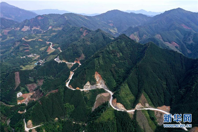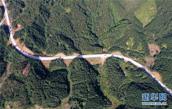 這是位于廣西融水苗族自治縣四榮鄉(xiāng)境內(nèi)在建的羅融二級(jí)公路(11月19日無人機(jī)拍攝)。 新華社記者 黃孝邦 攝