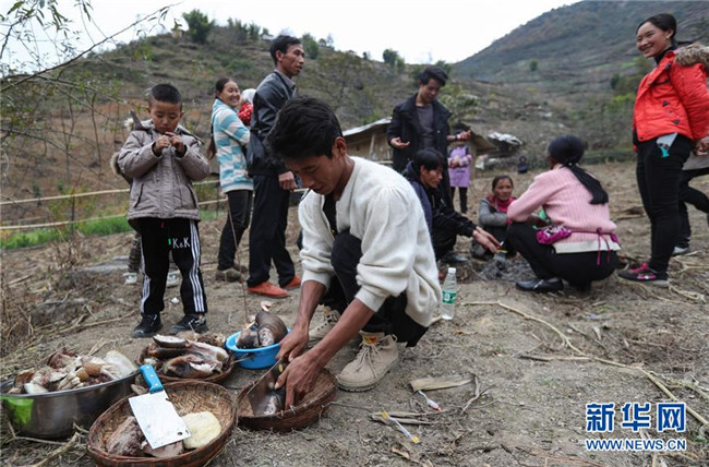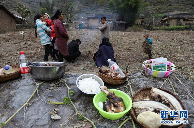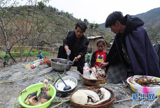 11月24日,在昭覺縣支爾莫鄉(xiāng)阿土列爾村,當?shù)鼐用駵蕚涫焓场⒕频仁澄锛雷?,并相互贈送?/div>
