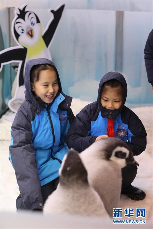 當(dāng)日,來自廣州和珠海的小學(xué)生代表來到珠海長隆海洋王國,參加企鵝關(guān)愛活動(dòng),零距離接觸今年新生的帝企鵝。本次活動(dòng)旨在加強(qiáng)極地科普教育,提高小學(xué)生保護(hù)動(dòng)物和呵護(hù)極地的意識(shí)。 新華社記者 盧燁 攝