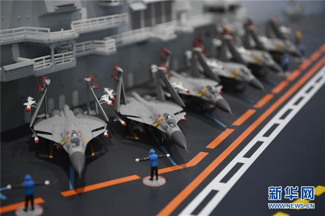 12月30日拍攝的銀川航空館展出的航母艦載機模型。新華社記者王鵬攝