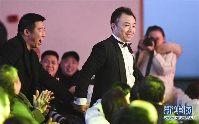 1月12日,中央歌劇院文藝小分隊(duì)志愿者、男中音歌唱家耿哲在慰問演出上與觀眾互動(dòng)。新華社記者 王全超 攝