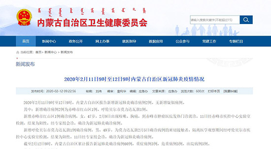 2月12日,記者從內(nèi)蒙古自治區(qū)衛(wèi)生健康委員會獲悉,2020年2月11日9時至12日9時,內(nèi)蒙古自治區(qū)報(bào)告新增新冠肺炎確診病例2例。無新增疑似病例。
