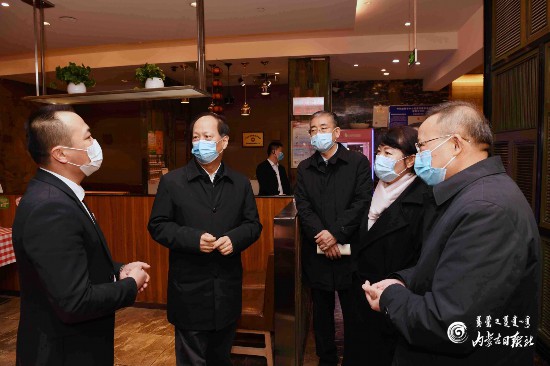 3月12日,自治區(qū)黨委書記、人大常委會主任石泰峰隨機走進(jìn)一家臨街餐館,檢查防疫措施,詢問員工返崗和營業(yè)情況。 內(nèi)蒙古日報社融媒體記者 袁永紅 攝