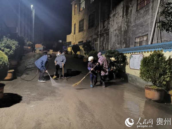 開(kāi)學(xué)在即,大方縣第三中學(xué)工作人員正在清潔校園。楊勝 攝