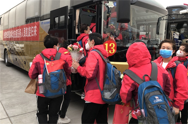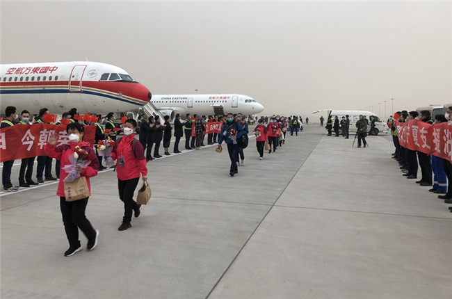 今天下午,載有寧夏第五批、第六批援湖北醫(yī)療隊隊員的包機降落在銀川河東國際機場。今日撤離隊伍共有323人返回,其中320人乘機返回,3人駕駛緊急救援車返回?;貙幒?,各醫(yī)療隊醫(yī)務人員將分別由五市接回,在指定酒店接受14天醫(yī)學隔離。據了解,疫情以來,寧夏陸續(xù)派出六批援湖北醫(yī)療隊隊員共計785人,目前仍有8名疾控中心流調人員繼續(xù)在武漢、潛江支援。