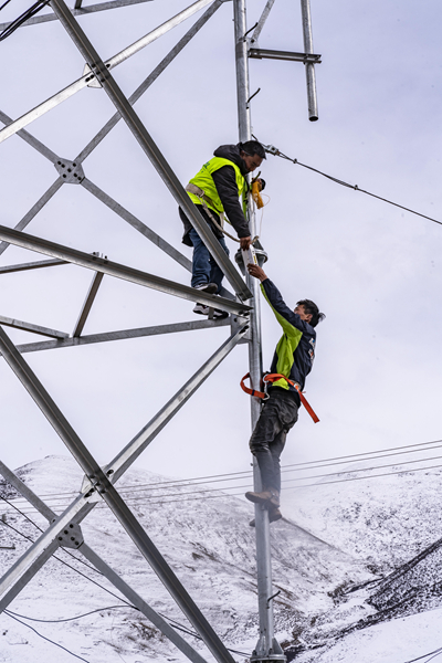 在距離當(dāng)雄縣城約80公里左右的烏瑪塘鄉(xiāng)巴嘎村,中國電信集團拉薩分公司當(dāng)雄電信局的技術(shù)人員在調(diào)試基站設(shè)備(3月6日攝)。新華社記者 孫非/攝