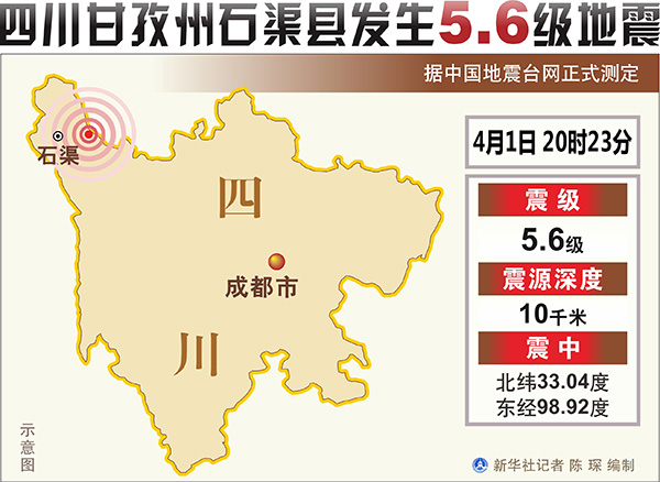 據(jù)中國地震臺網(wǎng)正式測定,1日20時23分在四川甘孜州石渠縣發(fā)生5.6級地震,震源深度10千米。