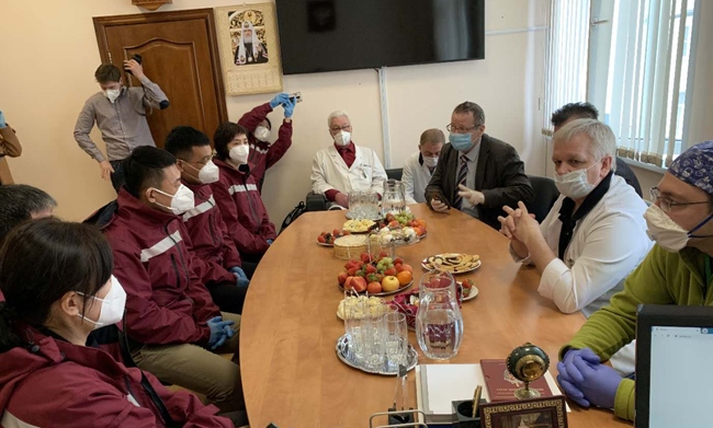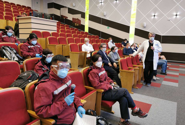 7天時間專家們已經(jīng)在當(dāng)?shù)氐?家醫(yī)院與醫(yī)學(xué)界同仁分享了經(jīng)驗,還通過視頻連線向在俄華僑華人、中資企業(yè)和留學(xué)生代表講解新冠防控科普知識,解答相關(guān)問題,并交接了防疫物資。