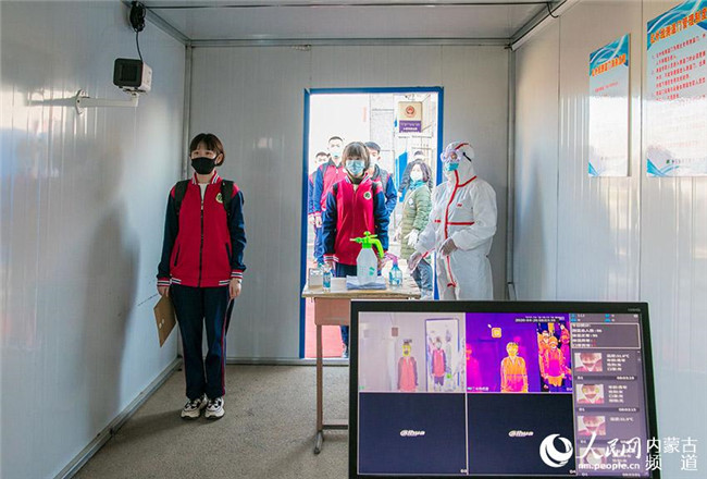 內(nèi)蒙古呼和浩特市第十二中學返校學生在測量體溫。