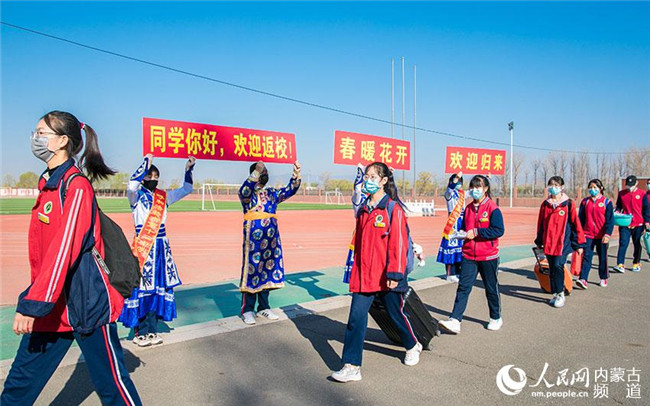 設置測溫消毒通道、實行錯峰分餐制、增設臨時隔點……4月26日,內(nèi)蒙古呼和浩特市玉泉區(qū)教育局多措并舉織密疫情防控安全網(wǎng)的前提下,高一、高二年級,初一、初二年級有序返校復學。這是該區(qū)第二批次學校開學,高三、初三年級已于3月30日復課。(丁根厚 攝)