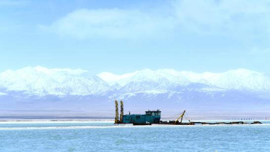 遠處人工鹵水運河上轟鳴聲陣陣,鹽湖游輪破風而來,掀起一波波潔白的浪花,在陽光的照射下金光閃爍。乘坐游船航行在鹵水人工運河上可以直觀體驗工業(yè)遺風,欣賞全機械化的船采船運,感受茶卡鹽湖鹽業(yè)開采的滄桑巨變,是“原生態(tài)的鹽湖工業(yè)活景觀”。