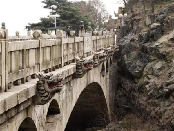 原潭側(cè)巖石上建有廟宇叫五龍宮,宮內(nèi)供有五位龍君,文化革命前殘垣還在,“文革”后徹底毀廢。由于山洪原因,潭逐漸被碎石填塞,今已不復(fù)存在。唯潭上的五龍橋及橋頭上的大型五龍彩色壁畫依然向游人訴說著五龍?zhí)睹利惖膫髡f。橋欄鐫刻的“五龍橋”三字是當時任中共中央書記處書記的胡喬木同志所書。