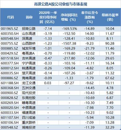 在疫情之下,交通企業(yè)普遍虧損。從高速公路企業(yè)來說,客運(yùn)量驟減和免費(fèi)政策的雙重夾擊之下,他們經(jīng)歷了長達(dá)79天的“至暗時(shí)刻”。同花順數(shù)據(jù)顯示,A股高速公路板塊總計(jì)有21家上市公司。截至4月30日,共有16家發(fā)布了第一季度業(yè)績報(bào)告,其中有14家公司營收、凈利潤雙雙下滑。與此同時(shí),還有高速公路概念股的同期普遍下跌。