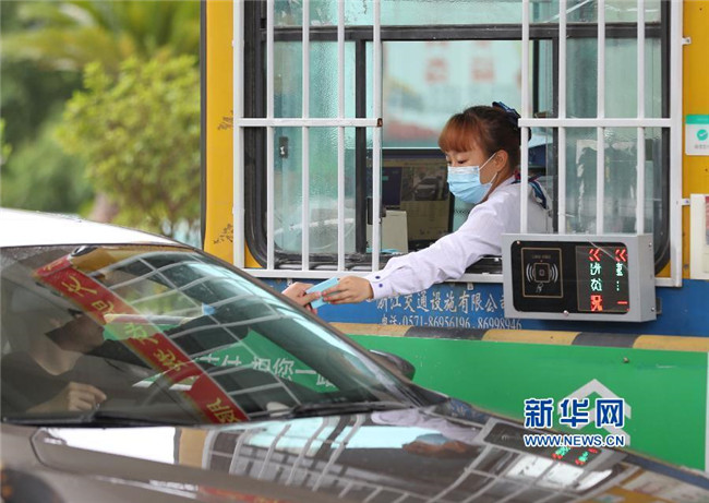 5月6日,貴州省銅仁市玉屏侗族自治縣滬昆高速玉屏收費(fèi)站的收費(fèi)員在收取過往車輛過路費(fèi)。 交通運(yùn)輸部4月28日發(fā)布關(guān)于恢復(fù)收費(fèi)公路收費(fèi)的公告,經(jīng)國務(wù)院同意,自2020年5月6日零時(shí)起,經(jīng)依法批準(zhǔn)的收費(fèi)公路恢復(fù)收費(fèi)(含收費(fèi)橋梁和隧道)。 新華社發(fā)(胡攀學(xué) 攝)