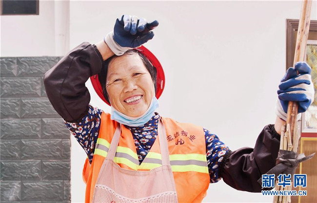 5月8日,湖南省江永縣瀟浦鎮(zhèn)永陽(yáng)路,環(huán)衛(wèi)工人唐翠英面帶微笑在清掃間隙小憩。 當(dāng)日是世界微笑日。 新華社發(fā)(田如瑞 攝)