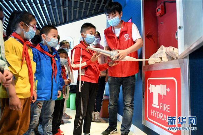 5月10日,合肥市淝南社區(qū)的志愿者向轄區(qū)兒童講解滅火設備的使用方法。新華社記者 劉軍喜 攝