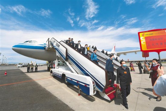 5月20日,參加十三屆全國人大三次會議的西藏人大代表抵京。本報(bào)記者 旦增西旦 攝