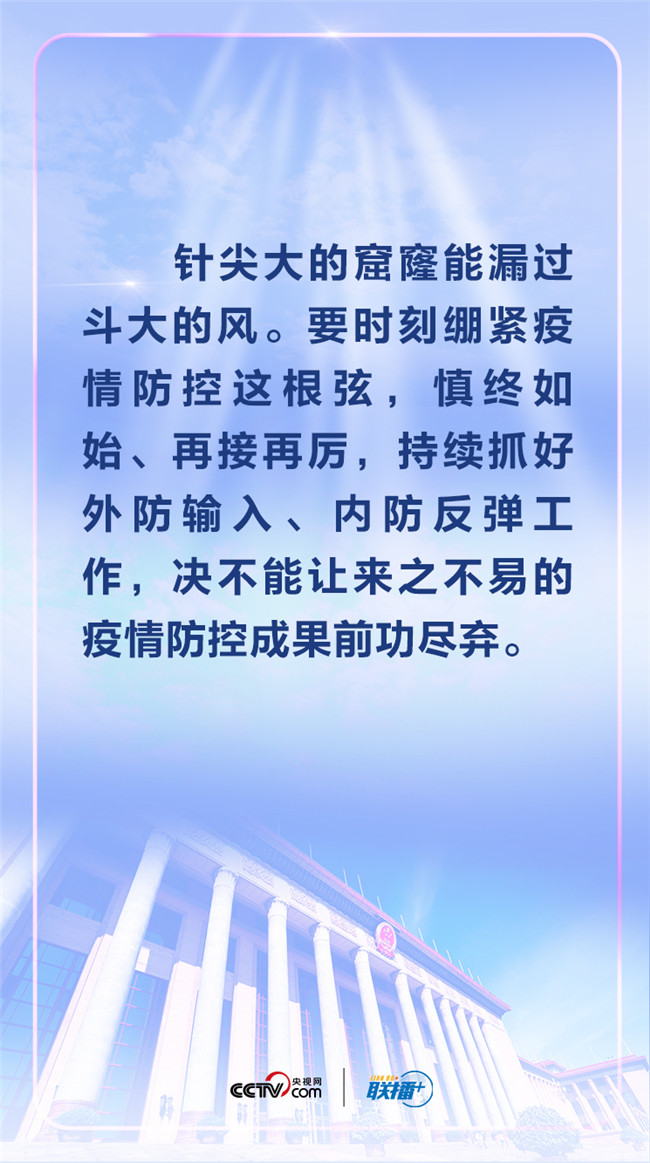當(dāng)前,境外疫情擴(kuò)散蔓延勢(shì)頭仍然沒(méi)有得到有效遏制,國(guó)內(nèi)個(gè)別地區(qū)聚集性疫情仍然存在,湖北有時(shí)還出現(xiàn)散發(fā)零星確診病例,無(wú)癥狀感染者每天還有新增。習(xí)近平用一句“大白話”講明了加強(qiáng)疫情防控的重要性。