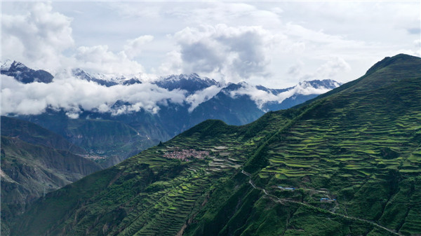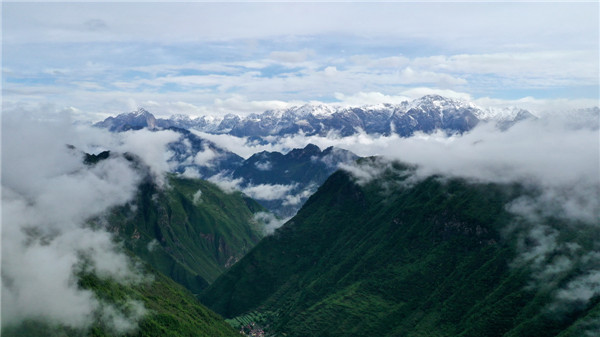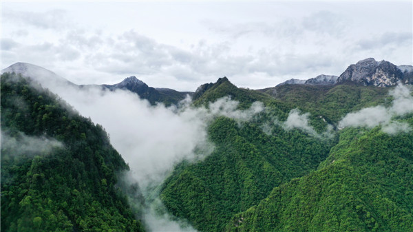 這是5月27日拍攝的雨后云霧繚繞的岷山(無(wú)人機(jī)照片)。