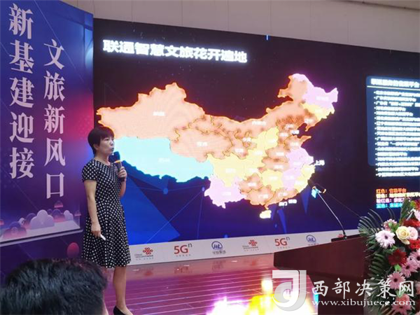 簽約儀式上,首先由中國(guó)聯(lián)通5G文旅專家、高級(jí)工程師楊穎用5G+文旅專題片開(kāi)場(chǎng),生動(dòng)形象地向與會(huì)人員展示5G時(shí)代智慧引領(lǐng)的先進(jìn)技術(shù),并以“聯(lián)通5G助力智慧文旅新時(shí)代”為題,為大家講解5G技術(shù)如何助力文旅發(fā)展。