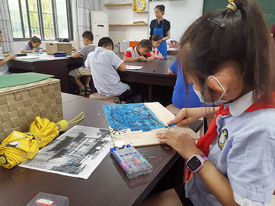 五一小學(xué)學(xué)生在社團(tuán)學(xué)習(xí)版畫。 王磊/攝