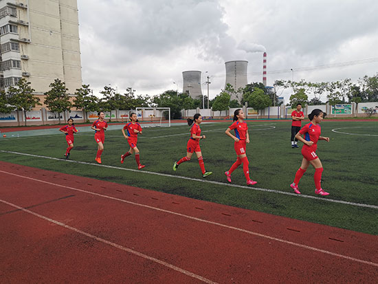 五一小學(xué)女足隊(duì)正在訓(xùn)練。 王海涵/攝