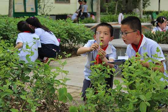 五一小學(xué)學(xué)生在該校“百草園”里勞動。韋豹/攝
