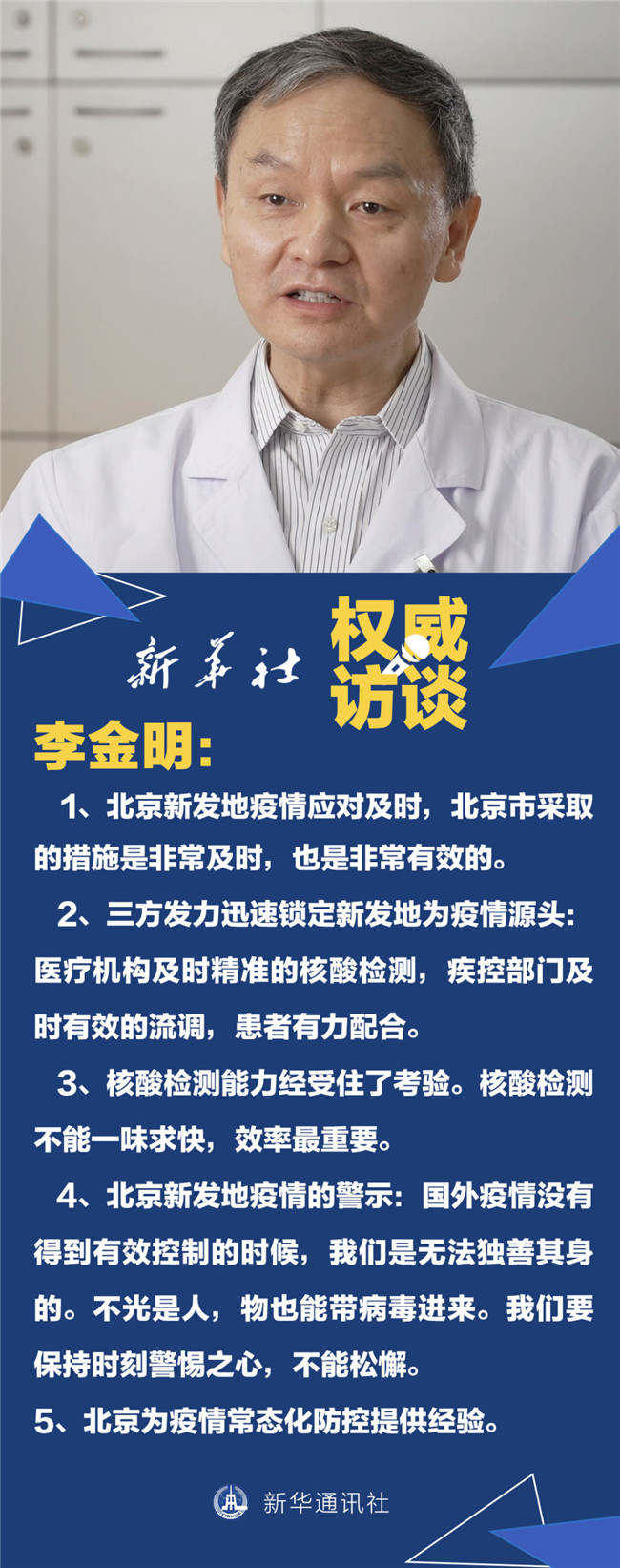 作為國家衛(wèi)生健康委派駐北京專家組專家,從6月13日起,國家衛(wèi)生健康委臨床檢驗(yàn)中心副主任李金明便開始投入緊張的疫情防控工作,對(duì)北京提供指導(dǎo),與北京的同仁們并肩作戰(zhàn)。在與病毒傳播賽跑的過程中,北京用最短時(shí)間、最快速度實(shí)現(xiàn)了抗疫的全城動(dòng)員、全民行動(dòng)。