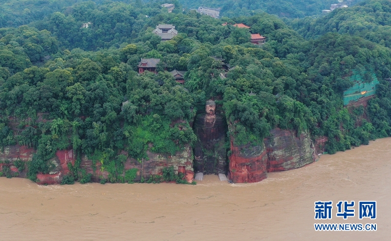 8月18日,受暴雨和上游洪水影響,四川樂山岷江、青衣江、大渡河水位迅速上漲。樂山大佛腳趾被洪水漫過,這是新中國成立以來的首次。目前樂山市已啟動I級防汛應急響應。(李昕鋒)