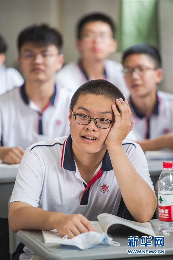 9月1日,武漢中學(xué)高一七班的學(xué)生在上英語(yǔ)課。當(dāng)日,武漢市2842所中小學(xué)、幼兒園迎來(lái)開(kāi)學(xué),涉及學(xué)生139.9萬(wàn)人,百萬(wàn)學(xué)子重返校園。新華社記者肖藝九攝