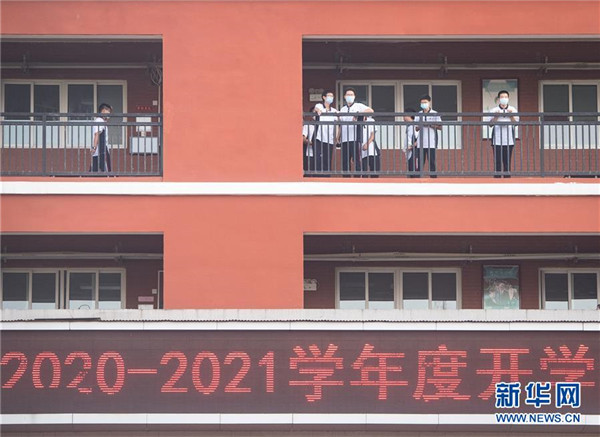 9月1日,武漢中學(xué)的學(xué)生準(zhǔn)備參加開(kāi)學(xué)典禮。當(dāng)日,武漢市2842所中小學(xué)、幼兒園迎來(lái)開(kāi)學(xué),涉及學(xué)生139.9萬(wàn)人,百萬(wàn)學(xué)子重返校園。新華社記者肖藝九攝