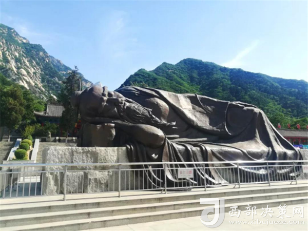 在華山腳下的玉泉院廣場(chǎng)上,橫躺著一尊大型雕像,雕像長12.8米,高5.6米,雕刻的是一位寬面長髯、側(cè)身而臥的老者——陳摶!陳摶(tuán)(871年-989年),安徽亳州真源縣人,五代宋初著名道教學(xué)者,字圖南,號(hào)扶搖子,賜號(hào)希夷先生(出自《道德經(jīng)》),后世尊稱為陳摶老祖、希夷祖師等。由于疫情關(guān)系,玉泉院暫時(shí)閉院,但廣場(chǎng)上的這尊雕像卻仍吸引了很多游客前去觀賞拍照留念。