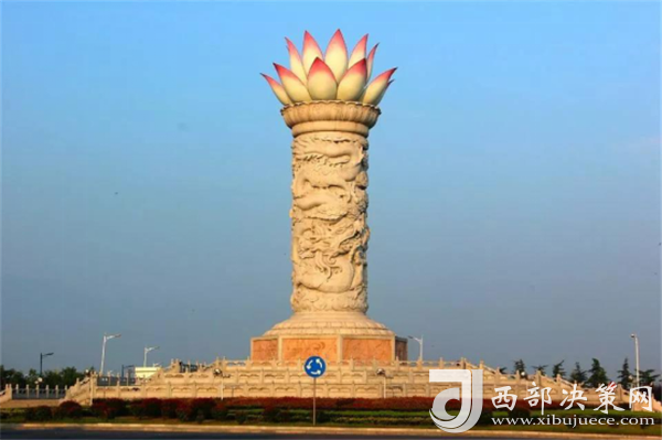 這張圖是生態(tài)廣場(chǎng)的寶蓮燈城雕,全景鏡頭下的平面圖片,則抬高了整個(gè)基座,顯得“仙氣十足”,整個(gè)寶蓮燈高28米,用大理石為材質(zhì)雕成的巨大燈體。雕塑基座四周鑲有8副浮雕,圍繞“劈山救母”的故事而展開。