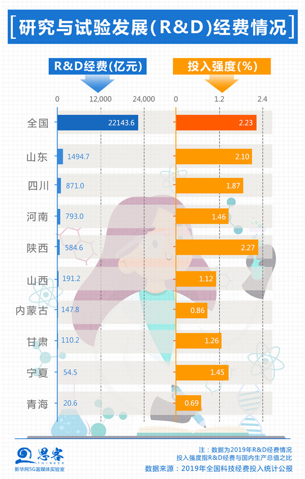 同東部沿海地區(qū)、南方省份相比,黃河流域創(chuàng)新競爭壓力巨大,創(chuàng)新要素“孔雀東南飛”的趨勢嚴(yán)峻。2019年,九省區(qū)內(nèi)只有陜西的R&D經(jīng)費(fèi)投入強(qiáng)度高于全國平均水平。高端人才、技術(shù)勞動(dòng)力、產(chǎn)業(yè)資本等關(guān)鍵要素外流態(tài)勢仍在持續(xù),因此黃河流域在新舊動(dòng)能轉(zhuǎn)換上面臨困境。