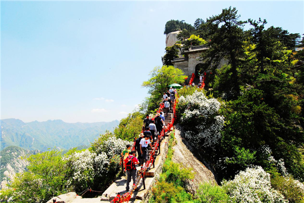 除了險峻秀麗的自然風(fēng)光,華山的人文特色也讓人神往。西岳廟、云臺觀、玉泉院、鎮(zhèn)岳宮、玉女祠、全真觀、圣母殿、毛女祠、煉丹爐和巨靈祠所代表的道教文化,秦始皇、武則天、乾隆皇帝多次“駕幸及此”、“駐蹕憑眺”華山留下的摩崖石刻更是中華民族的文化隗寶。