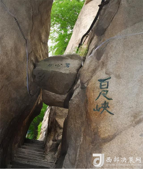 百尺峽,"幢去峽復(fù)來,天險不可瞬。雖云百尺峽,一尺一千仞。"過千尺幢向北折即到"百尺峽",它是登華山的第二個險境。