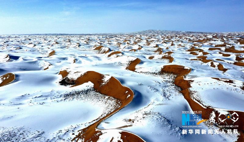 原標題:【“飛閱”中國】甘肅民勤:大漠雪霽美如畫