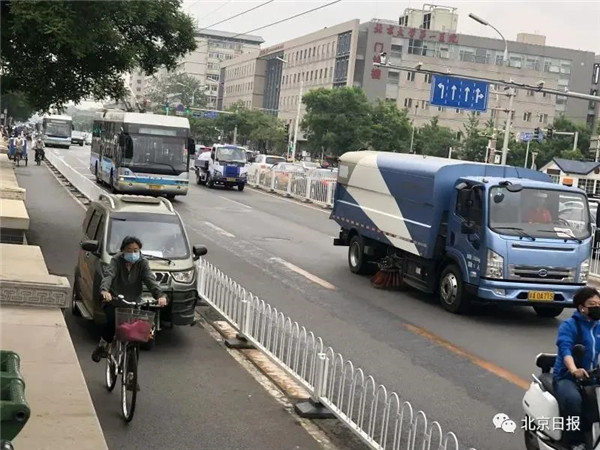 ▲一處非機動車道上,不時有老年代步車駛過。圖片來源:北京日報