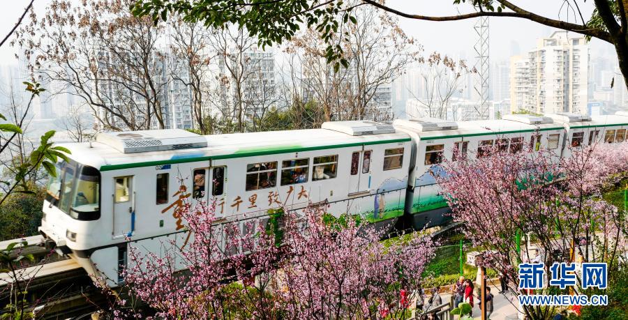 初春時(shí)節(jié),重慶氣溫逐漸回暖,暖陽(yáng)里的山城春意盎然。在重慶軌道交通2號(hào)線佛圖關(guān)段,山城步道上的梅花簇簇綻放,單軌列車穿越花海,組成一幅賞心悅目的獨(dú)特城市景觀。