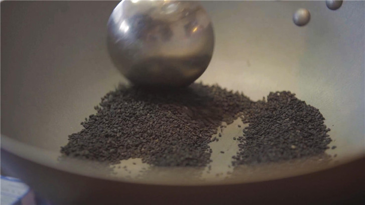 將炒熟的黑芝麻加入白砂糖放入研磨機。