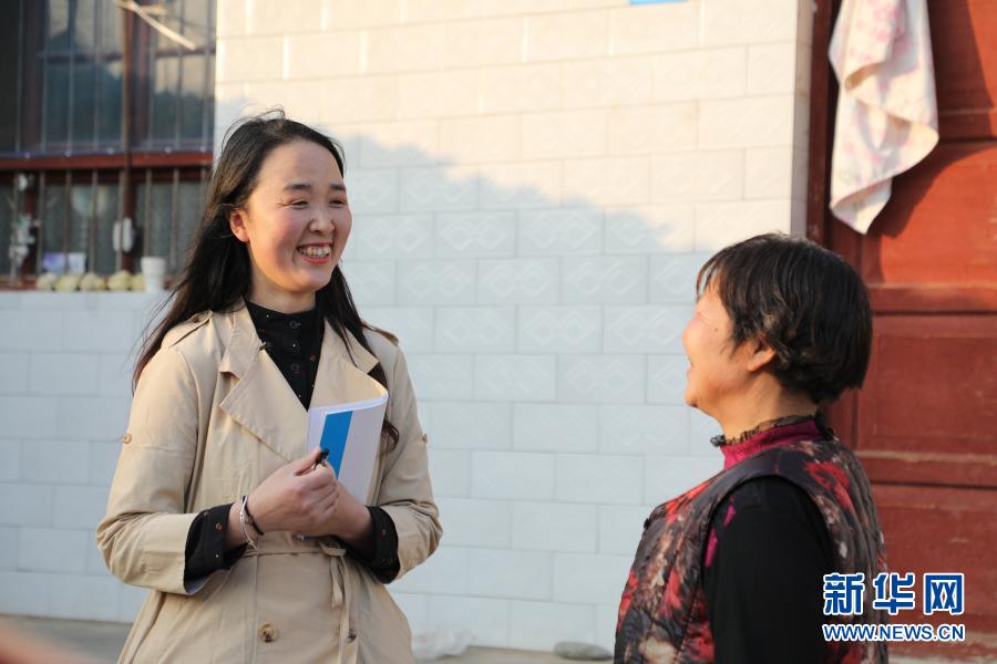 2月23日,在甘肅省隴南市徽縣水陽(yáng)鎮(zhèn)石灘村,全國(guó)人大代表梁倩娟(左)同村民茍明交流?!⌒氯A社記者 張智敏 攝
