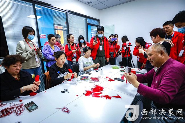 西部決策網(wǎng)訊 一折、一卷、六朵花瓣整齊羅列,細(xì)鐵絲緊緊繞圈固定,一朵火紅的手工花便成型了。“這個(gè)是我們的一些手工藝品,都是有延安特色的,如果你們想學(xué)的話,隨時(shí)來,我們這里免費(fèi)培訓(xùn)。”3月30日,在延安市寶塔區(qū)電商直播融合孵化服務(wù)中心的直播間里,60歲的退休工人董智玲正在直播間里給網(wǎng)友直播手工藝品制作,引來了眾多記者的圍觀。