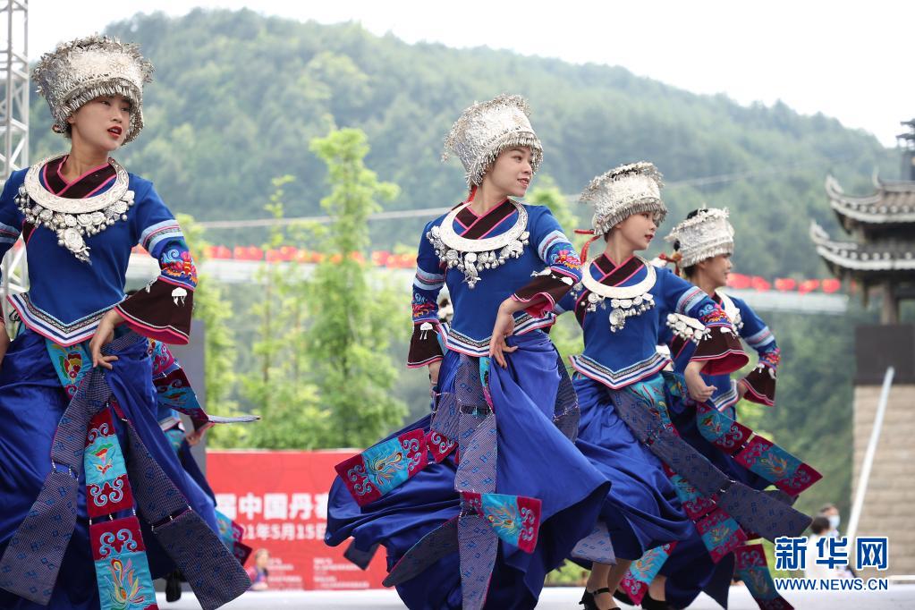 5月16日,演員在丹寨縣萬達小鎮(zhèn)非遺歌舞展演活動上表演苗族木鼓舞。新華社發(fā)(黃曉海 攝)