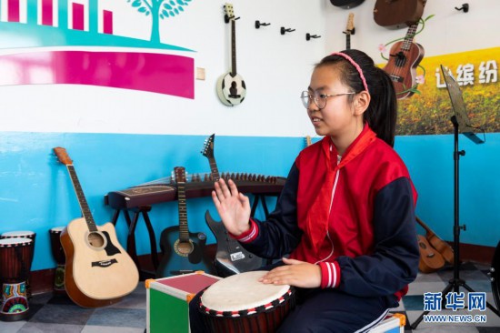 在黑龍江省安達(dá)市任民鎮(zhèn)中心小學(xué)校園內(nèi),“村里的孩兒”音樂班在排練節(jié)目(5月25日攝)。新華社記者 謝劍飛 攝