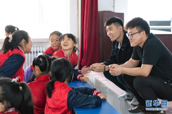 在黑龍江省安達(dá)市任民鎮(zhèn)中心小學(xué),“村里的孩兒”音樂班的孩子結(jié)束中午的合唱訓(xùn)練后和老師交流(5月25日攝)。新華社記者 謝劍飛 攝