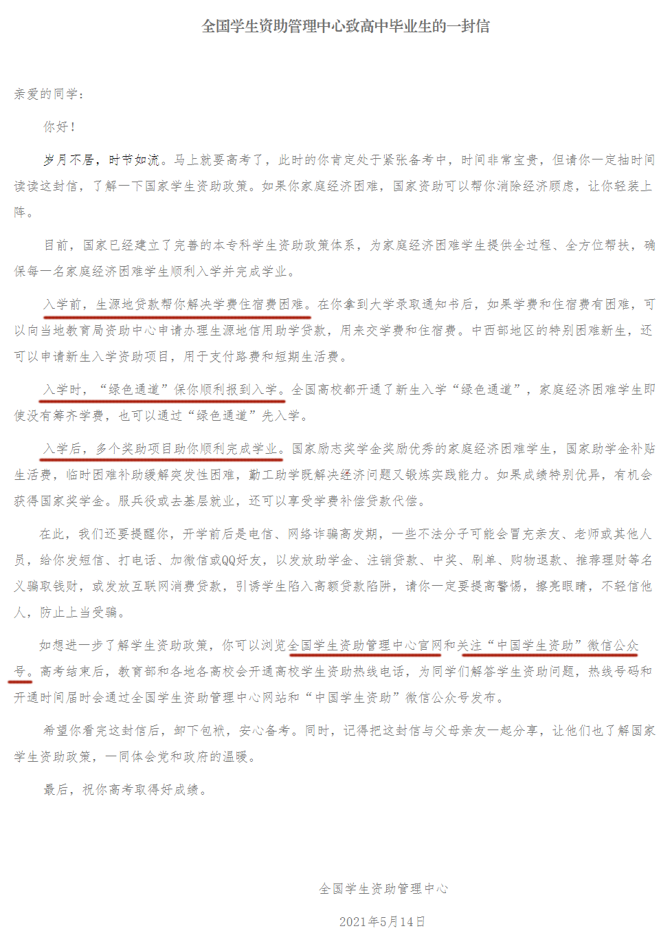 全國學(xué)生資助管理中心已經(jīng)向