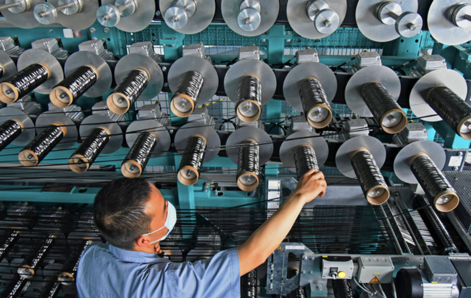 在江蘇連云港經濟技術開發(fā)區(qū),工人在查看碳纖維生產線運行情況。新華社發(fā)(耿玉和 攝)