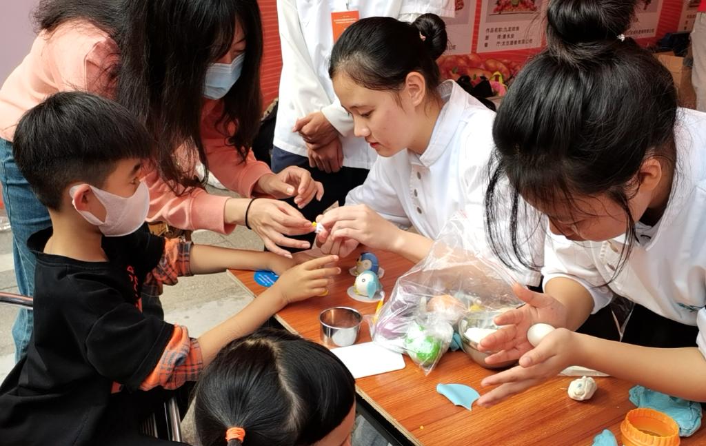2021年3月20日,當(dāng)天開(kāi)幕的粵菜師傅工程中山美食文化周上,技校學(xué)生正在現(xiàn)場(chǎng)展示粵式點(diǎn)心的制作技藝。 新華社記者魏蒙攝